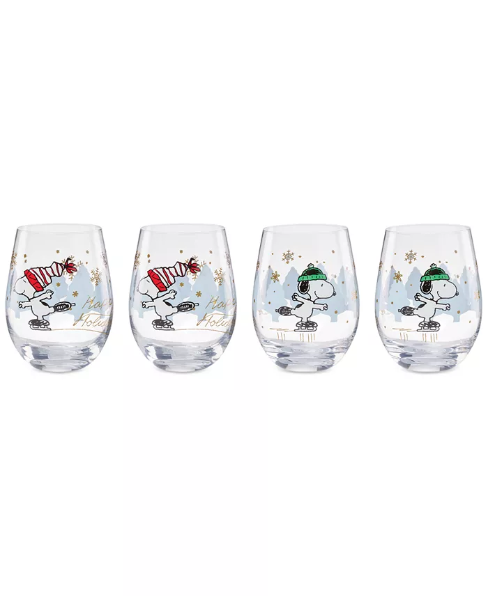 Lenox Snoopy Skating Christmas Tumblers, Set of 4