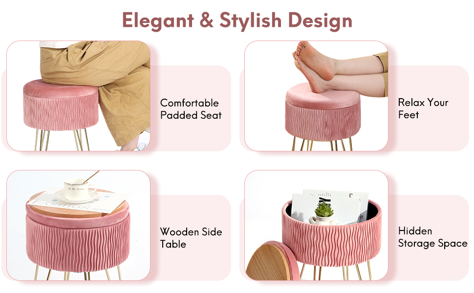 这款质感圆凳绝对可以为你的梳妆台或闺房注入亮点与质感!丝绒布质低调又不失闪耀感,而且还可打开变成一个收纳空间,此外上盖也能反着放,就能让小圆凳变成一的小边桌摆放东西,多种用法性价比更高。多色可选,无论是梳妆台、更衣间、浴室、卧房或客厅都很适合。