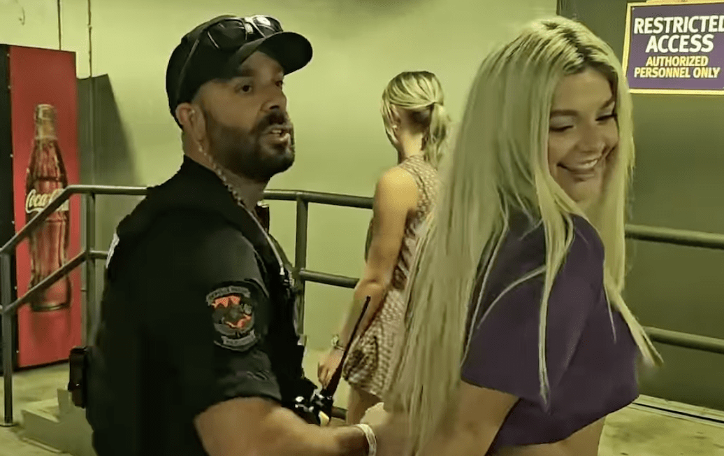 她的“狂欢”并没有持续太久。安保人员和警察迅速介入,视频的后半段显示,她双手被反剪戴上了手铐,并在众目睽睽之下被押送出了体育场。这一幕迅速在TikTok和社交媒体上疯传,点击量惊人。